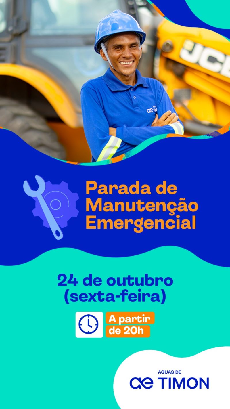 A Águas de Timon informa que realiza, nesta sexta-feira (24), uma manutenção emergencial eletromecânica no sistema de abastecimento de água do município, com início previsto para as 20h.